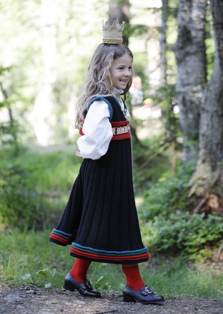 Det er en festdrakt designet av Bente P Røvik (det er hos henne jeg har lånt bildet), og det er Rauma som har gitt ut mønsteret.